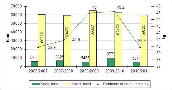 Samal ajal kui kohalik puuvilja- ja marjasaak vähenes, imporditi 2010/2011 saagiaastal Eestisse ligi 60 000 tonni puuvilju ning marju. Neist peamised olid õunad, tsitruselised ja luuviljalised. Nii on ka puuviljade ja marjade tarbimisel esikohal just imporditud kaup – kodumaiste puu- ja marjaaedade saak moodustas eelmisel saagiaastal kogutarbimisest vaid 8 protsenti.