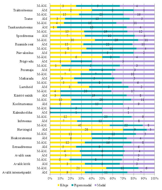 Järgnevalt aga ülevaade sellest, milliseid kogukonnateenuseid oskasid nimetada inimesed ise – millised teenused on kogukondades kättesaadavad ja milline on nende mõju. Teenuste pakkumise ja mõju analüüsimisel vaadati eraldi ääremaid ja mitte-ääremaid.