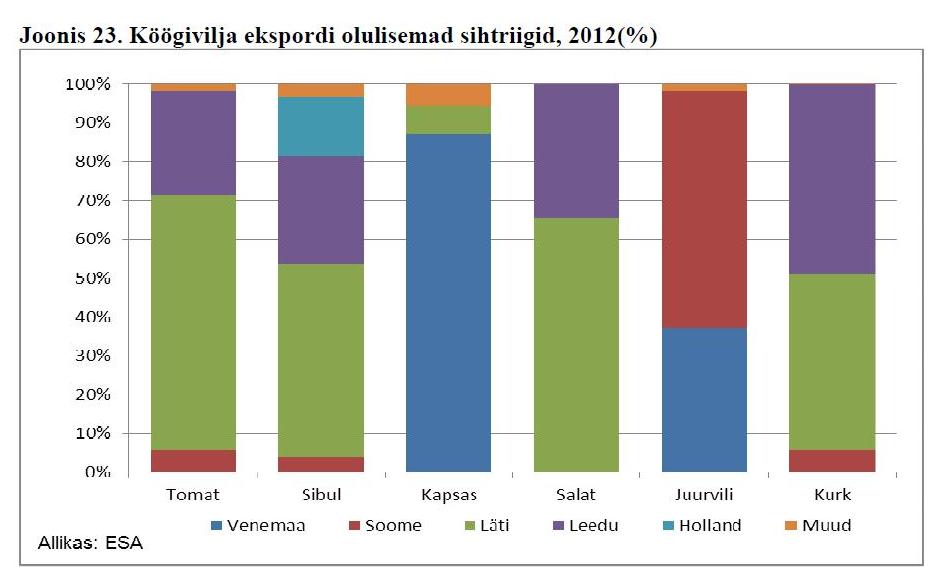 aastaga suurenes salati väljaveo maht üle 34%. Salati väljavedu moodustas köögivilja ekspordimahust 35,9% ning olulisemad sihtriigid olid Läti (65,3%) ja Leedu (34,5%).