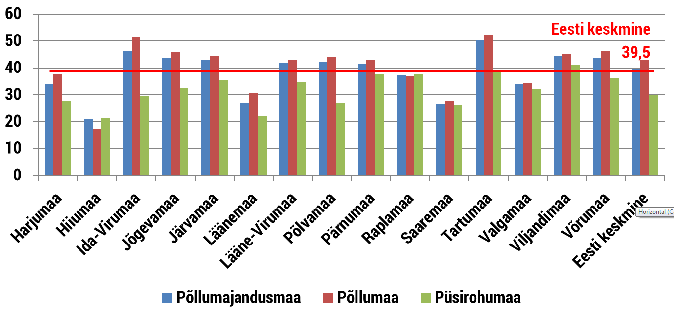 Üheksas maakonnas ületab rendihind Eesti keskmist. Kõrgeimad rendihinnad on Tartumaal (50,3 eurot/ha), Ida-Virumaal (46,1 eurot/ha) ja Viljandimaal (44,5 eurot/ha). Kõige vähem makstakse keskmisena renti Hiiumaal (20,9 eurot/ha), Saaremaal (26,7 eurot/ha) ja Läänemaal (27 eurot/ha). Kui üldjuhul on rendihinnad põllumaa puhul kõrgemad kui püsirohumaa puhul (püsirohumaa rendihind keskmiselt 70% põllumaa rendihinnast), siis Hiiumaal ja Raplamaal maksti püsirohumaa eest kõrgemat renti.
