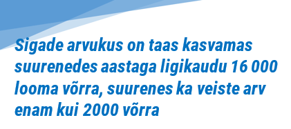 Sigade arvukus on taas kasvamas, mida toetas sealiha nõudluse kasv maailmaturul. Sigade arvukus suurenes aastaga ligikaudu 16 000 looma võrra ja veiste arv enam kui 2000 veise võrra. Lindude, lammaste ja kitsede arv vähenes 5%. 2019. aastal tapeti majapidamistes või müüdi lihatöötlemisettevõtetele tapaks 113 614 tonni eluskaalus loomi ja linde, mis on eelmise aasta sama perioodiga võrreldes 3% rohkem. Sealiha osatähtsus kogu lihatoodangust moodustas 56%, linnuliha 24%, veiseliha 19% ja lamba- ja kitseliha vaid 1% kogu lihatoodangust.
