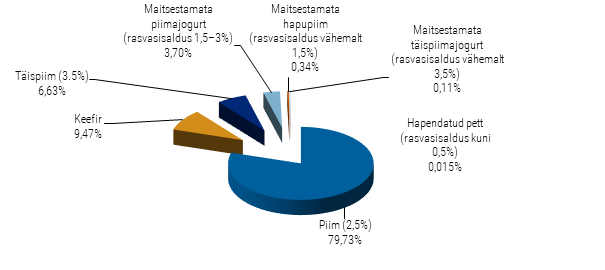 Koolipiimatoodete tarbimise osakaal erinevate toodete kaupa perioodil 1.08.2018–31.07.2019 on kujutatud joonisel 2.