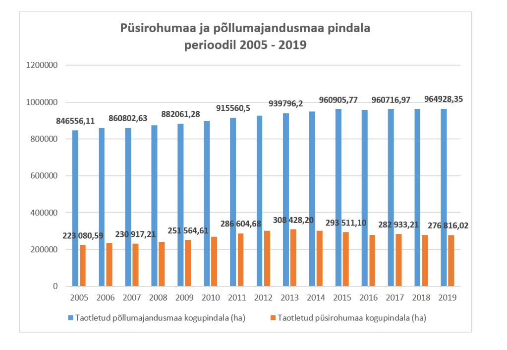 Kuni aastani 2014 oli süsteem sisuliselt muutumatu ja nagu jooniselt 1 näha, oli püsirohumaa pind kasvuteel. Parimatel aastatel ületas püsirohumaa pind 300 000 hektari piiri, olles 2013. aastal näitajate poolest tipus, moodustades kogu taotletavast põllumajandusmaast ligikaudu 33%. Kaheksa aasta jooksul oli lisandunud juurde püsirohumaid pisut rohkem kui 85 000 hektarit. Niisamuti suurenes sel perioodil ka taotletava põllumajandusmaa kogupindala, kasvades 2014. aastaks ligikaudu 102 000 hektarit.