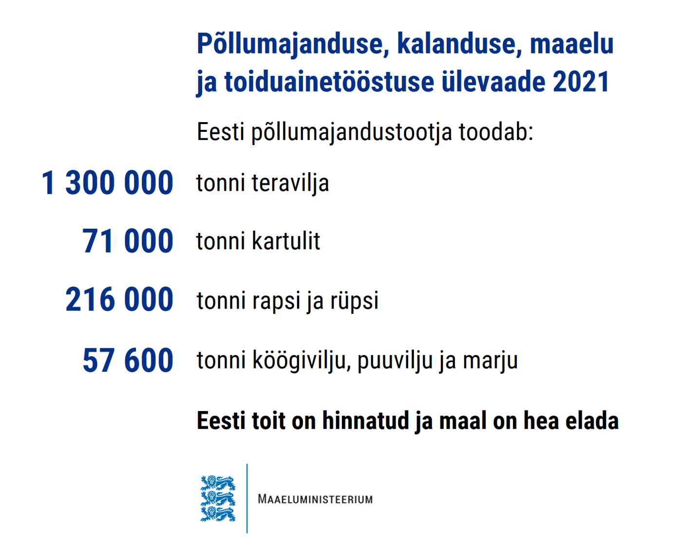 Milline oli 2021. aasta meie toidu tootjatele ja töötlejatele? Seda kajastab Maaeluministeeriumis äsja valminud põllumajanduse, kalanduse, maaelu ja toiduainetööstuse 2021. aasta ülevaade.