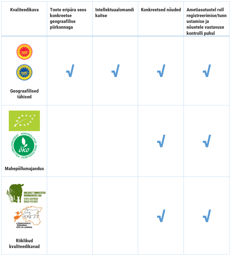 Lisaks Euroopa Liidu kvaliteedikavadele on põllumajandustootjatel võimalik luua ka selliseid kvaliteedikavasid, millele annab tunnustuse riik.