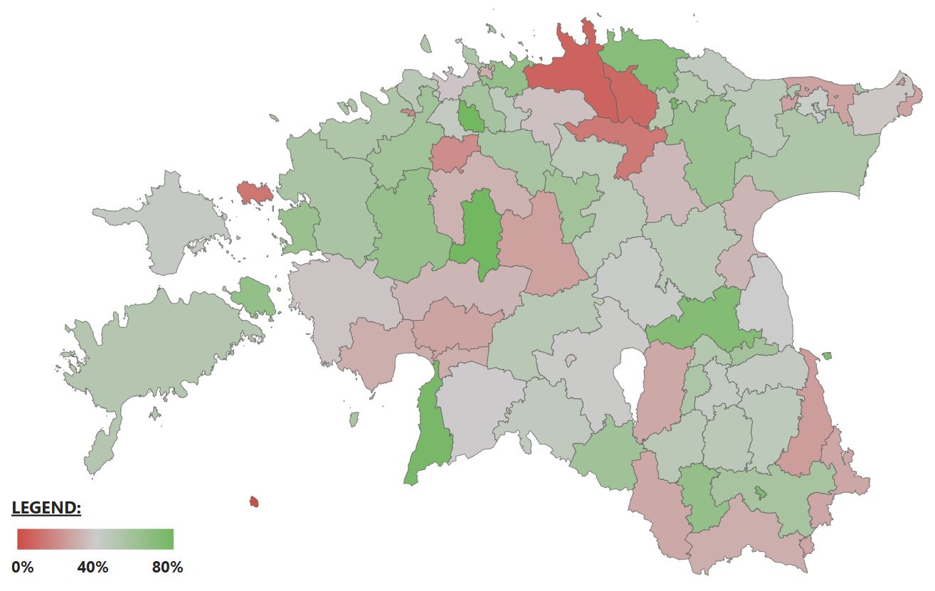 | Tartu vald | 0,93 | Tori vald | -0,58 |